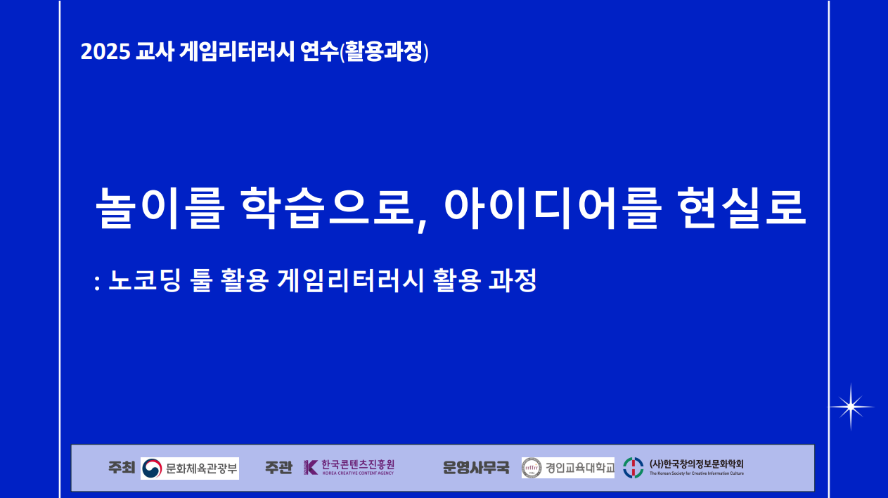 교사 자료실 게임리터러시 온라인 연수 게임리터러시 집합연수 게임리터러시 연구교사 교사 자료실 [2025 교사 게임리터러시 집합연수]교육적 상상력 게임을 만들다(심화 과정) 41 2025-10-21 [2025 교사 게임리터러시 집합연수]놀이를 학습으로, 아이디어를 현실로(활용 과정) 30 2025-10-21 [2025 교사 게임리터러시 집합연수]내 교실을 바꿀 미니 게임 체험 및 제작(기초 과정) 76 2025-09-23 2023 게임리터러시 교육 경진대회 우수사례집 380 2025-02-06 게임리터러시 교육 효과성 분석 (2022 분석 자료) 285 2025-02-06 2022 게임리터러시교육 수업지도안 우수사례집 264 2025-02-06 2022 게임리터러시교육 효과성 분석 보고서 195 2025-02-06 [경진대회] 게임과 영화로 배우는 과학수업 177 2025-02-06 [창의] 존중마을_교육용 게임콘텐츠 수업지도안 자료(2/2) 185 2025-02-06 [창의] 존중마을_교육용 게임콘텐츠 수업지도안 자료(1/2) 258 2025-02-06 [창의] 사랑마을_교육용 게임콘텐츠 수업지도안 자료(2/2) 181 2025-02-06 [창의] 사랑마을_교육용 게임콘텐츠 수업지도안 자료(1/2) 382 2025-02-06 1 2 3 4 5