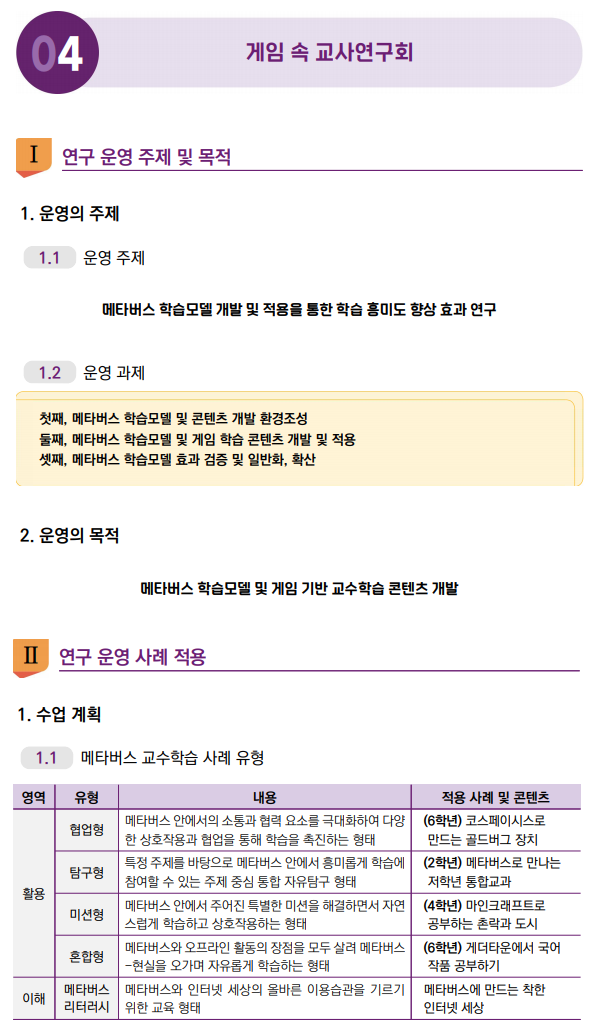 게임리터러시 연구교사 게임리터러시 온라인 연수 게임리터러시 집합연수 교사 자료실 교사 자료실 제목 [2021 신규 교사연구회 사례집] 4. 게임 속 교사연구회 날짜 2025-02-06 조회수 18 [2021 신규 교사연구회 사례집] 4. 게임 속 교사연구회 첨부파일 [2021 신규 교사연구회 사례집] 4. 게임 속 교사연구회.pdf 이전글 [2021 신규 교사연구회 사례집] 3. SW융합교육교사연구회 다음글 [2021 신규 교사연구회 사례집] 5. 게임의 쓸모 목록으로