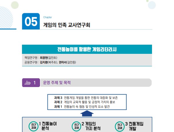게임리터러시 연구교사 게임리터러시 온라인 연수 게임리터러시 집합연수 교사 자료실 교사 자료실 제목 [2020 교사연구회 사례집] 5.게임의 민족 교사연구회 날짜 2025-02-06 조회수 19 [2020 교사연구회 사례집] 5.게임의 민족 교사연구회 첨부파일 [2020 교사연구회 사례집] 5.게임의 민족 교사연구회.pdf 이전글 [2020 교사연구회 사례집] 6.가나다 크래프트 교사연구회 다음글 [2020 교사연구회 사례집] 4.육량이 나르샤 교사연구회 목록으로