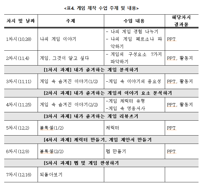 게임리터러시 연구교사 게임리터러시 온라인 연수 게임리터러시 집합연수 교사 자료실 교사 자료실 제목 게임 제작 동아리(학생들의 게임 문화를 기반으로 디지털 게임 만들기) 날짜 2025-02-06 조회수 4 게임 제작 동아리(학생들의 게임 문화를 기반으로 디지털 게임 만들기) 첨부파일 게임 제작 동아리(학생들의 게임 문화를 기반으로 디지털 게임 만들기).png 이전글 [2021 교사연구회 사례집] 30개 연구회(통합본) 다음글 친환경 전기에너지 분배 정책 게임 목록으로